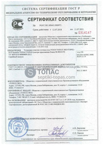 Септики ТОПАС-С 9 ПР поставляются полностью укомплектованными и готовыми к эксплуатации. Изготавливаются и поставляются в едином корпусе. Стандартная комплектация: